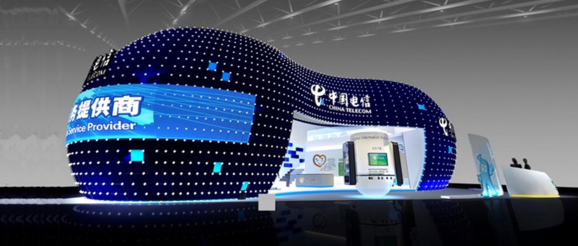 [07-05] ?展臺搭建沉浸式體驗館,中國電信展會展臺設計搭建-美湖展覽